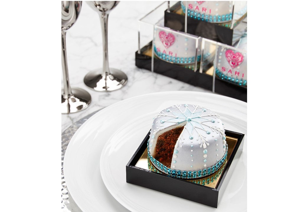This stunning gift set includes one larger 7 inch 'Let It Snow' cake, and a number of Mini cakes with our intricate snowflake designs all within the same gift box.